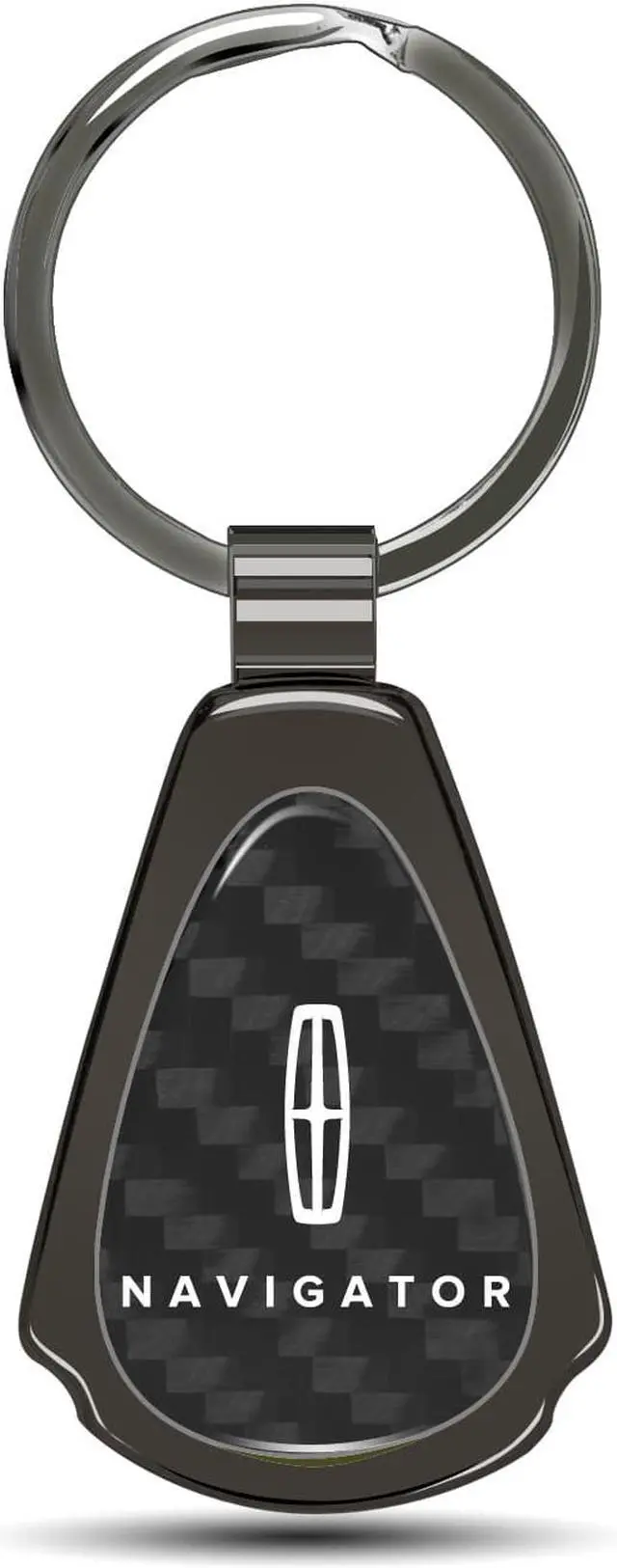 The tear-drop shaped pendant has a real carbon fiber insert with gunmetal chrome finished metal surround.