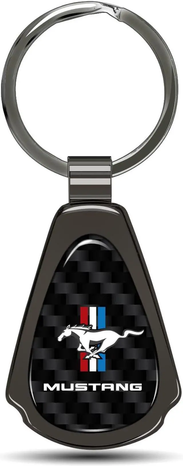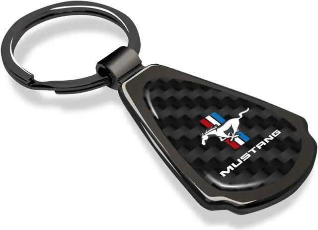 Ford Mustang Tri-Bar Real Black Carbon Fiber Gunmetal Black Metal Teardrop Key Chain