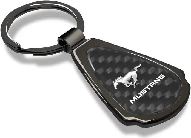 The tear-drop shaped pendant has a real carbon fiber insert with gunmetal chrome finished metal surround.
