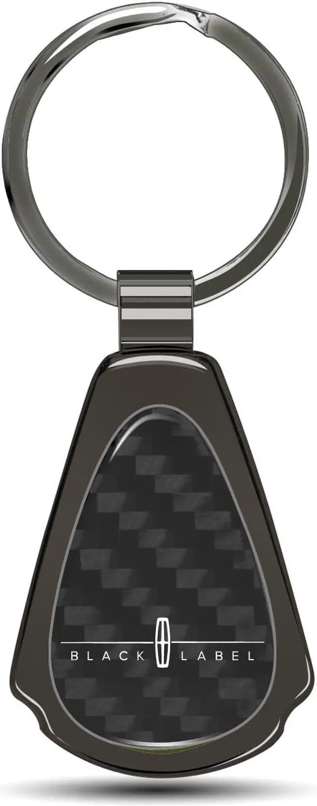 The tear-drop shaped pendant has a real carbon fiber insert with gunmetal chrome finished metal surround.