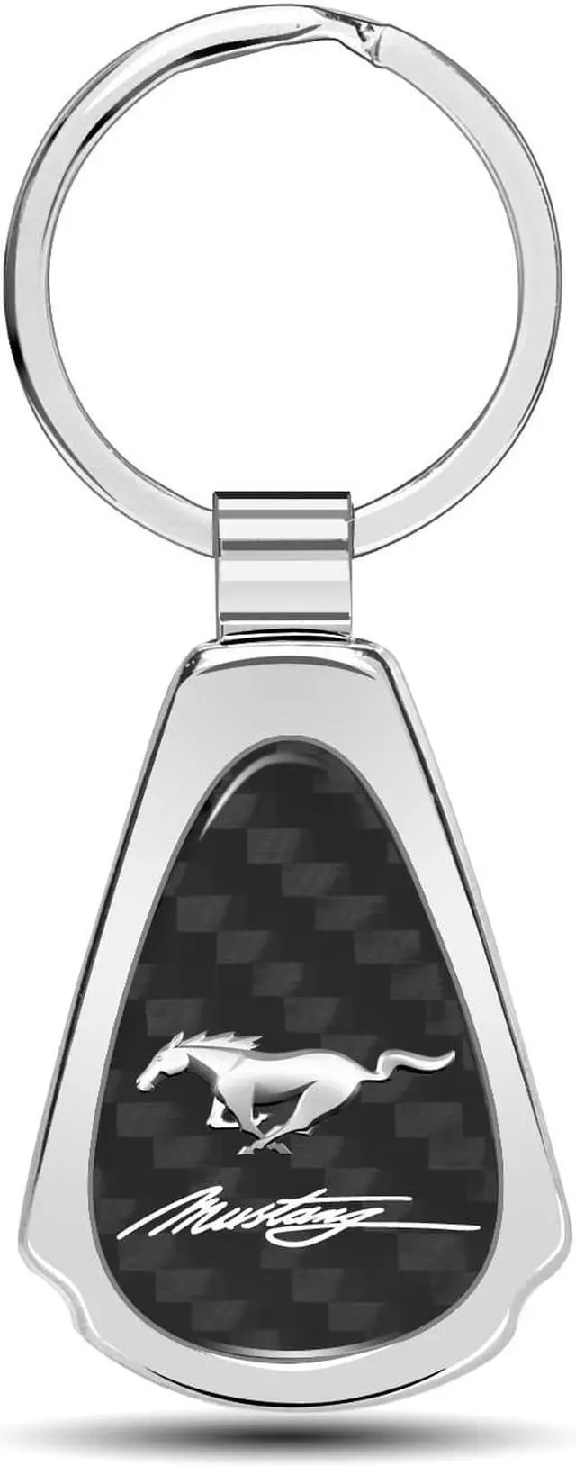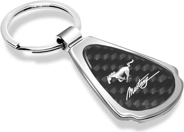 Ford Mustang Script Real Black Carbon Fiber Chrome Metal Teardrop Key Chain