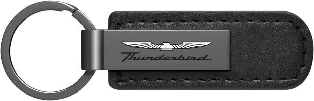 Ford Thunderbird Gunmetal Black Metal Plate PU Leather Strap Key Chain