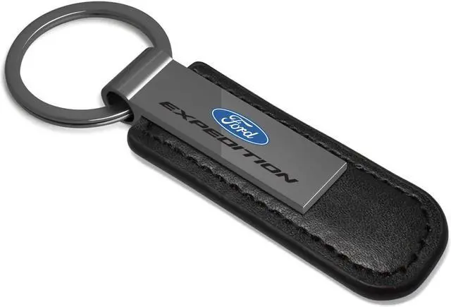 Ford Expedition Gunmetal Black Metal Plate PU Leather Strap Key Chain