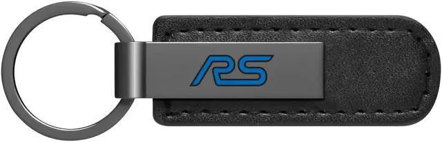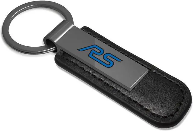 Ford Focus RS Gunmetal Black Metal Plate PU Leather Strap Key Chain