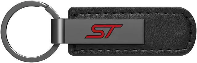 Ford Focus ST Gunmetal Black Metal Plate PU Leather Strap Key Chain