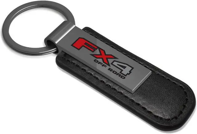 Ford FX4 Off Road Gunmetal Black Metal Plate PU Leather Strap Key Chain