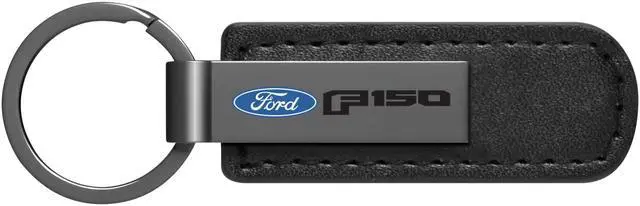 Ford F-150 2015 up Gunmetal Black Metal Plate PU Leather Strap Key Chain