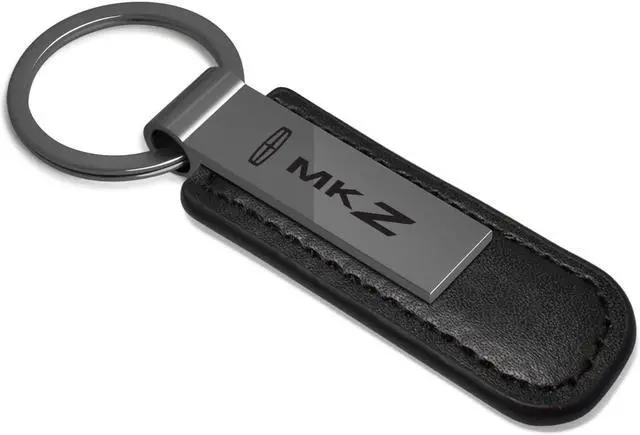 Lincoln MKZ Gunmetal Black Metal Plate PU Leather Strap Key Chain