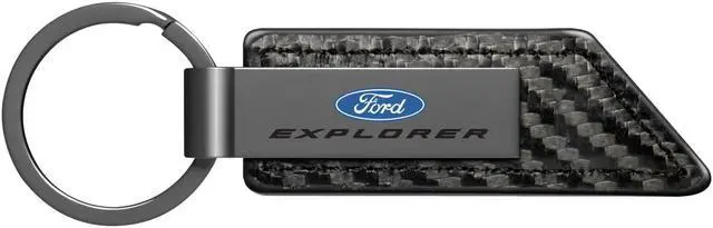 Ford Explorer Gunmetal Black Gray Metal Plate Carbon Fiber Texture Leather Key Chain