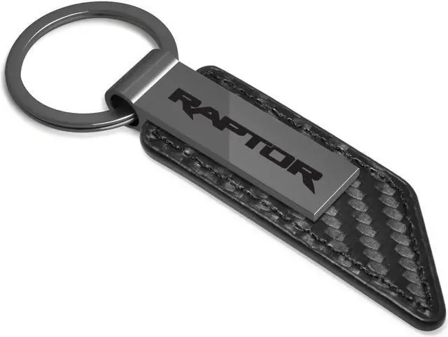 Ford F-150 Raptor Gunmetal Black Gray Metal & Carbon Fiber Texture Leather Key Chain