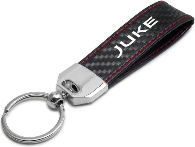 Nissan Juke Real Black Carbon Fiber Loop Strap Key Chain with Red Stitching