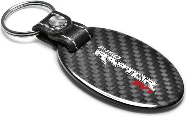 Ford F-150 Raptor SVT Real Carbon Fiber Oval Shape Black Leather Strap Key Chain