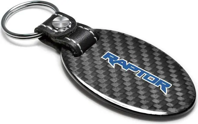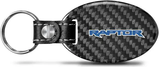 Ford Raptor in Blue Real Carbon Fiber Oval Shape Black Leather Strap Key Chain