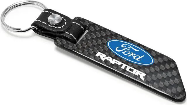 Ford F-150 Raptor Real Carbon Fiber Blade Style Black Leather Strap Key Chain