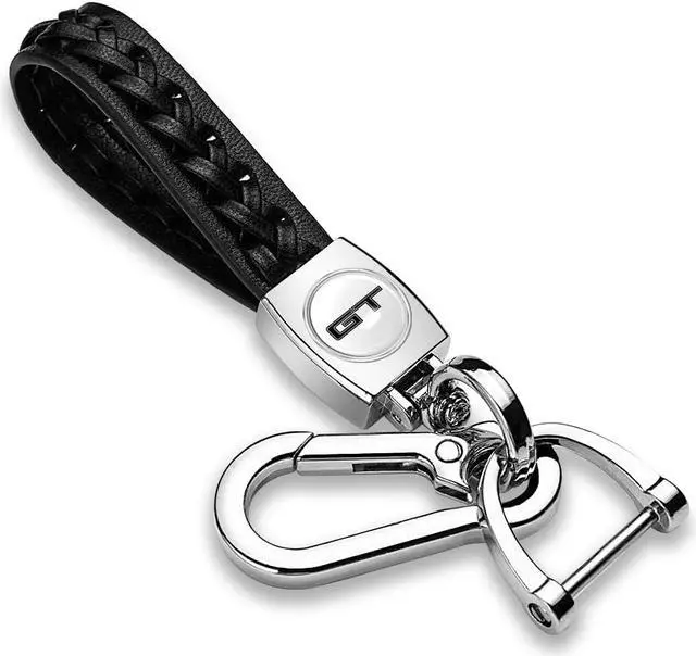 Ford Mustang GT in White Braided Rope Style Genuine Black Leather Key Chain