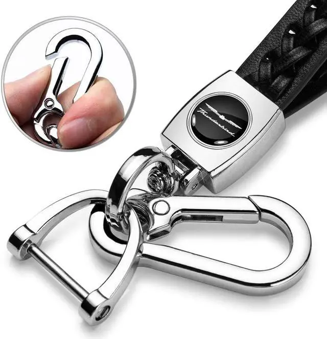 Ford Thunderbird in Black Braided Rope Style Genuine Black Leather Key Chain