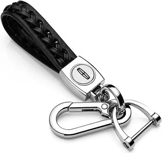 Lincoln Logo in White Braided Rope Style Genuine Black Leather Key Chain
