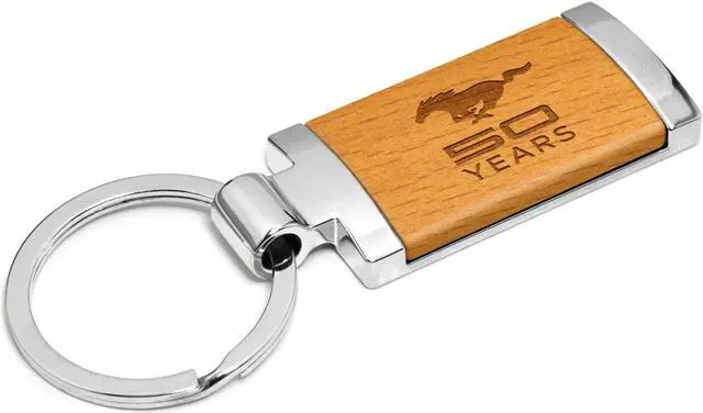 Ford Mustang 50 Years Laser Engraved Maple Wood Chrome Metal Trim Key Chain