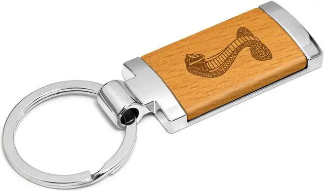 Ford Cobra Laser Engraved Maple Wood Chrome Metal Trim Key Chain