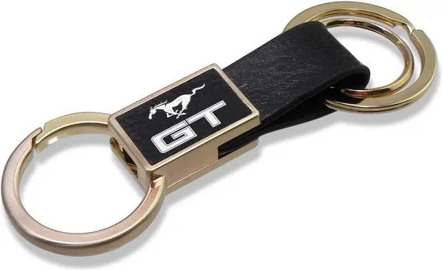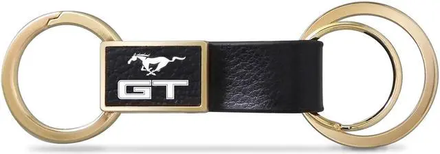 Ford Mustang GT Black Leather insert Golden Metal Leather Strap Key Chain
