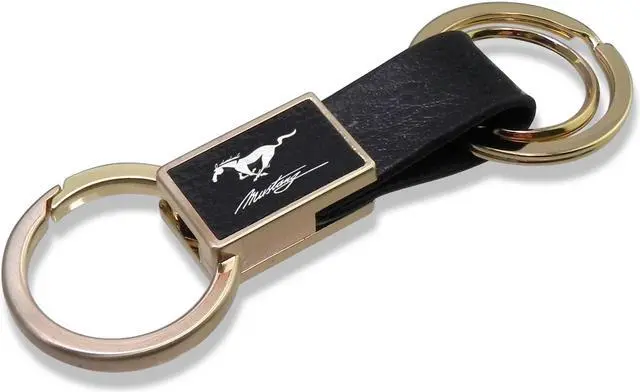 Ford Mustang Script Black Leather insert Golden Metal Leather Strap Key Chain