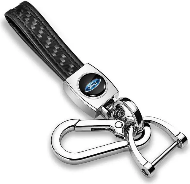 Ford Logo in Black Real Black Carbon Fiber Loop-Strap Chrome Hook Key Chain