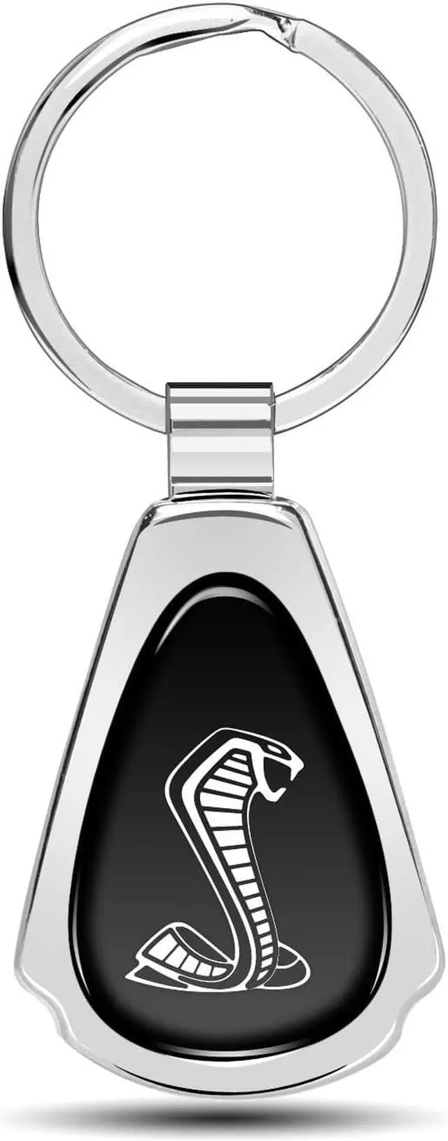Ford Mustang GT 5.0 Black Dome Chrome Metal Teardrop Key Chain