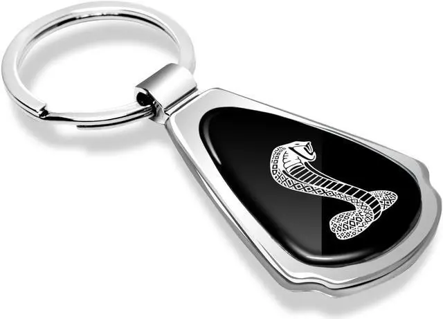 Ford Mustang Cobra Black Dome Chrome Metal Teardrop Key Chain