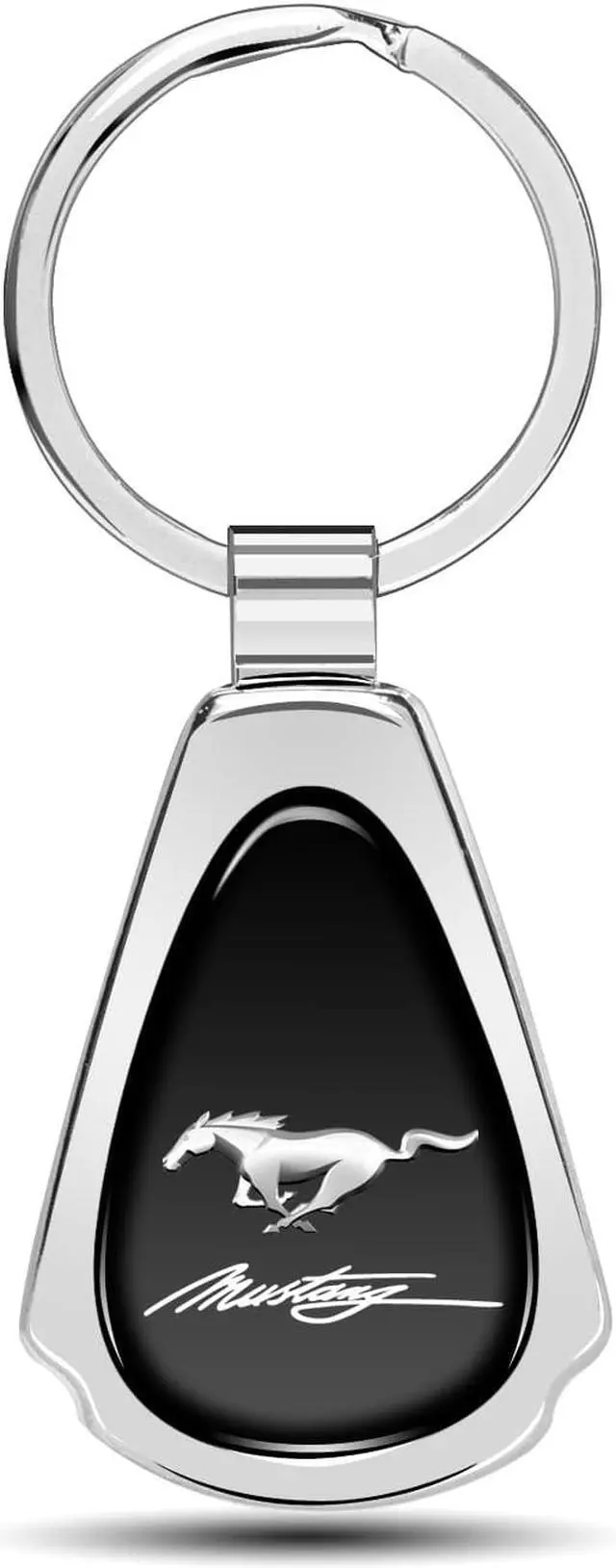 Ford Mustang Script Black Dome Chrome Metal Teardrop Key Chain