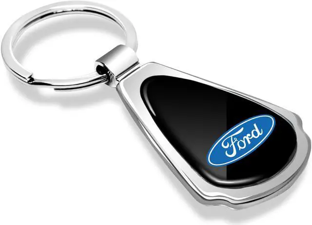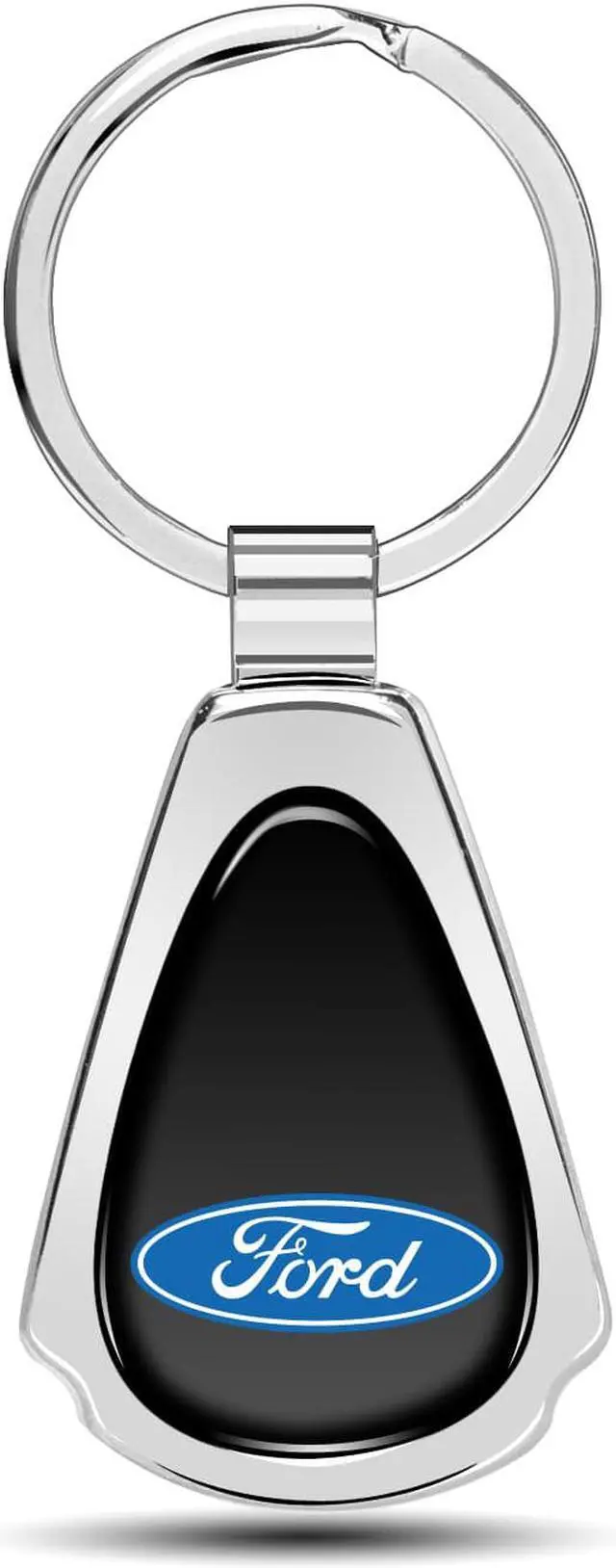 Ford Logo Black Dome Chrome Metal Teardrop Key Chain