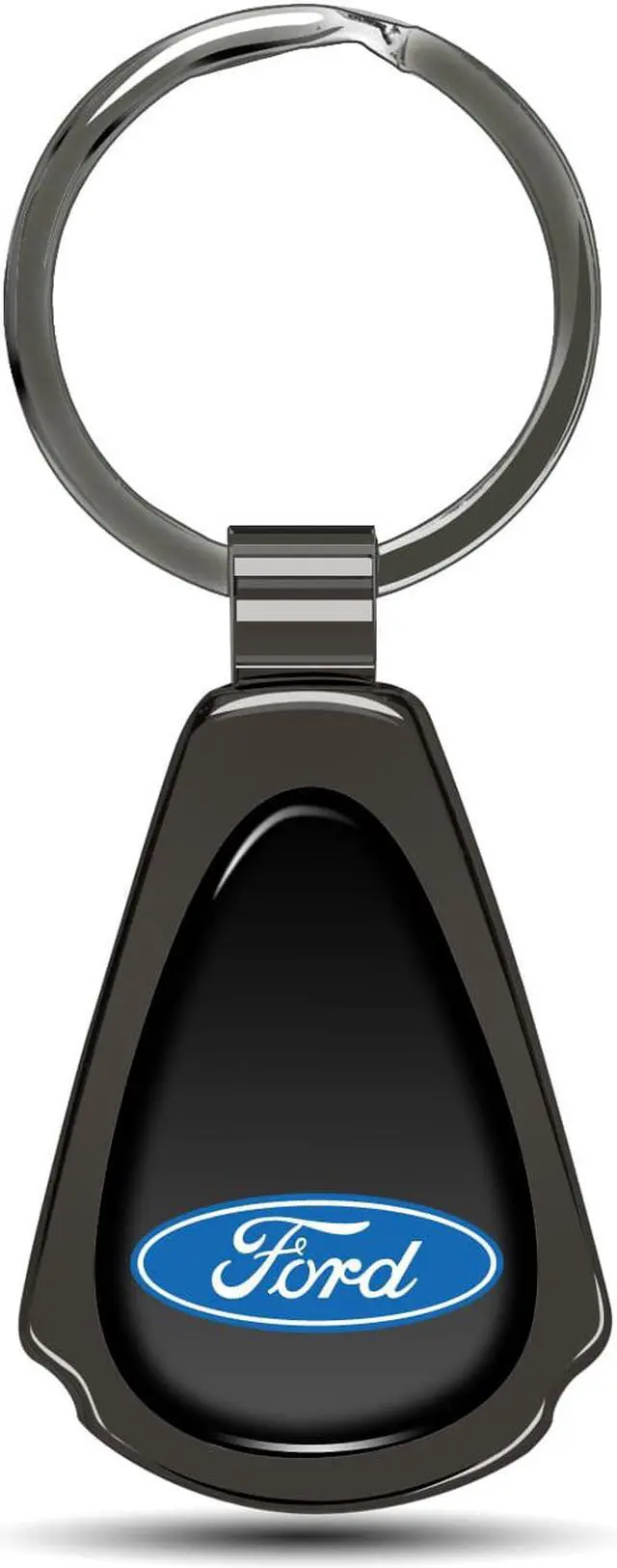 Ford Logo Black Dome Dark Gunmetal Metal Teardrop Key Chain