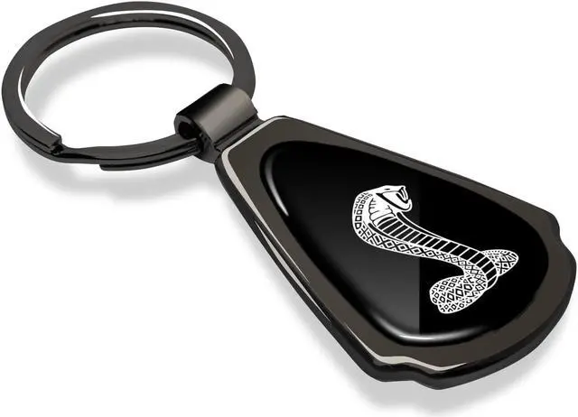 Ford Mustang Cobra Black Dome Dark Gunmetal Metal Teardrop Key Chain