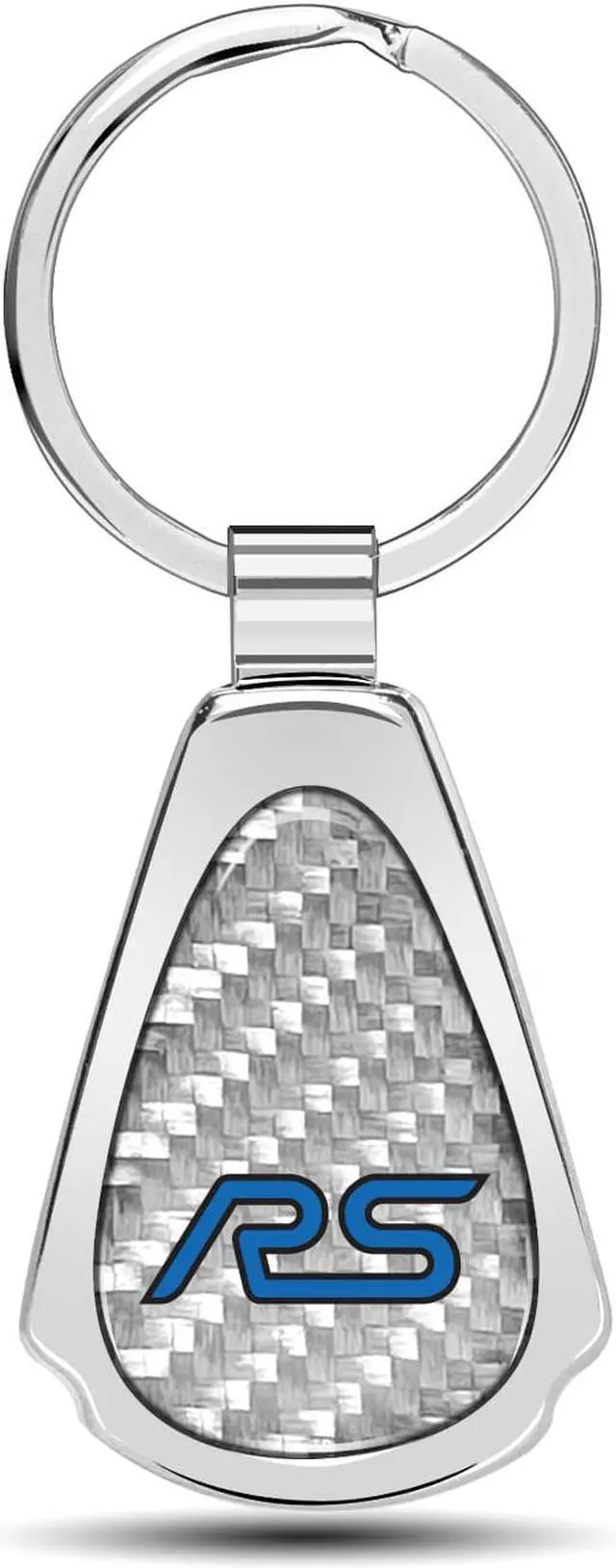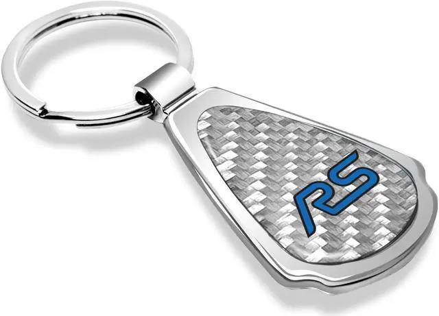 Ford Focus RS Real Silver Dome Carbon Fiber Chrome Metal Teardrop Key Chain
