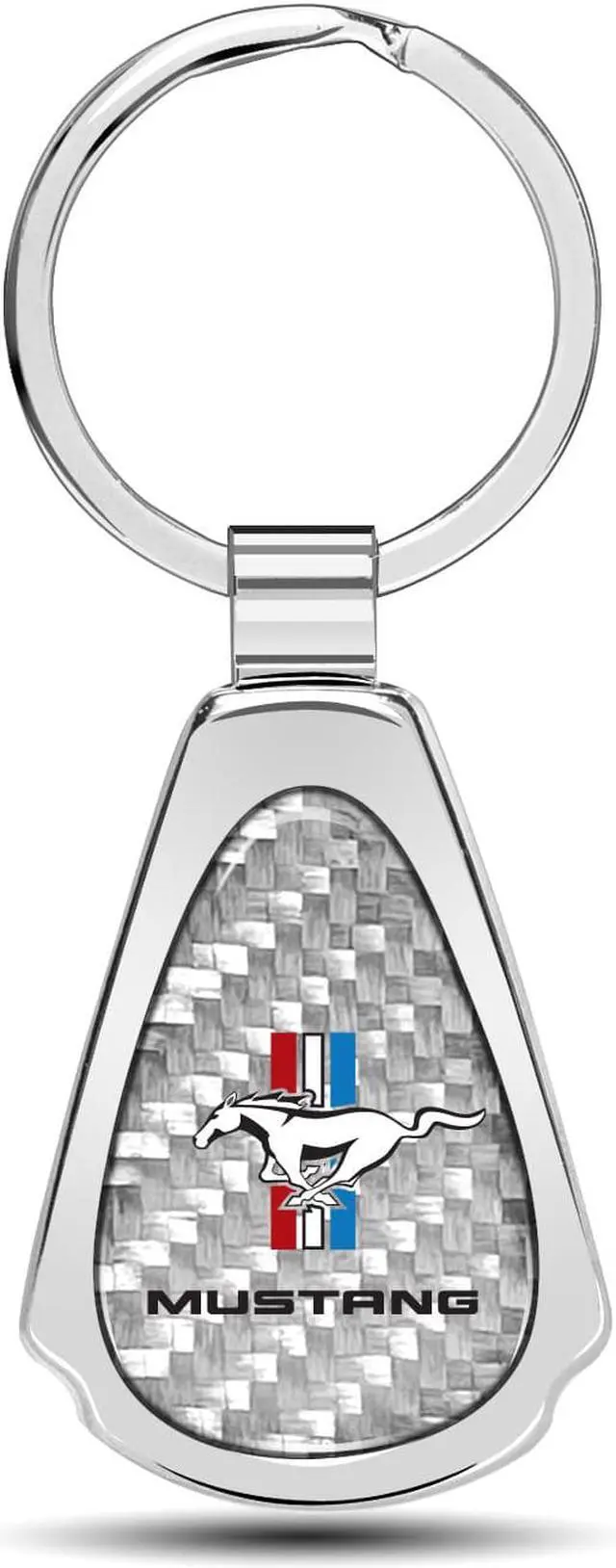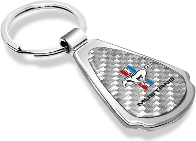 Ford Mustang Tri-Bar Real Silver Dome Carbon Fiber Chrome Metal Teardrop Key Chain
