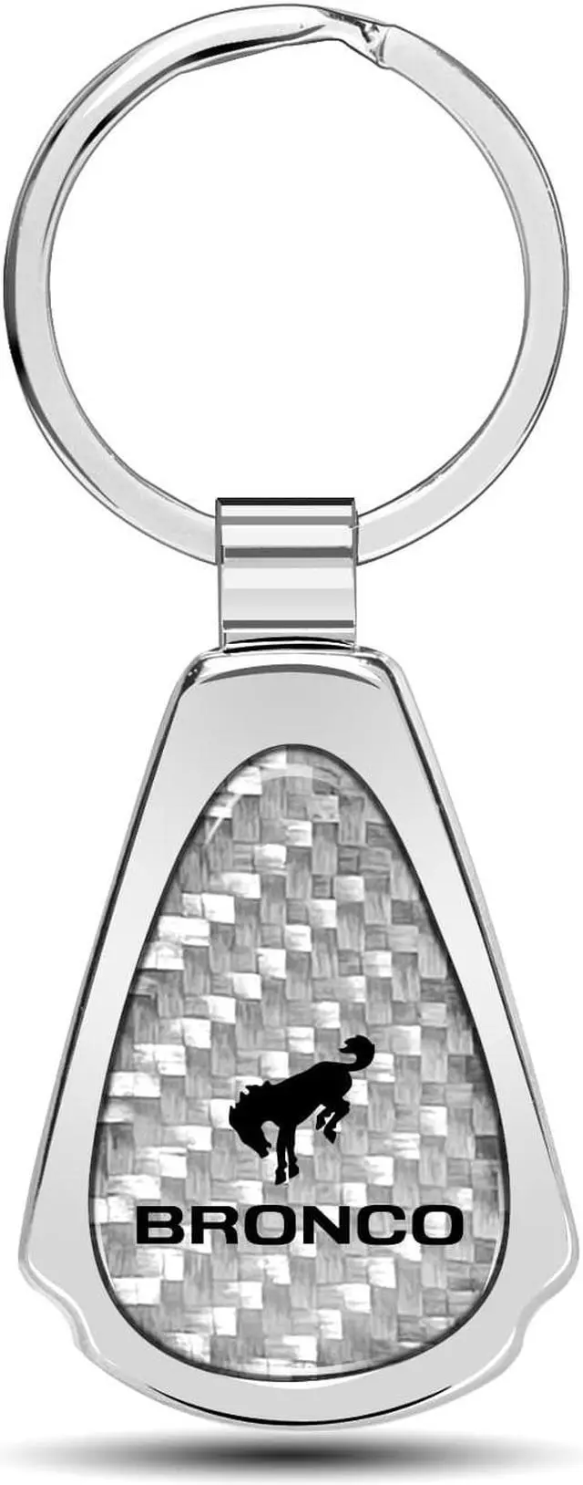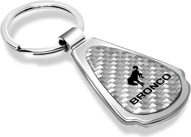 Ford Bronco Real Silver Dome Carbon Fiber Chrome Metal Teardrop Key Chain