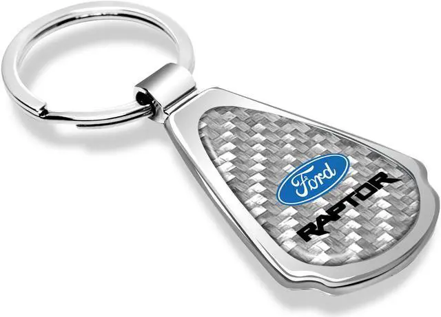 Ford F-150 Raptor 2017 up Real Silver Dome Carbon Fiber Chrome Metal Teardrop Key Chain