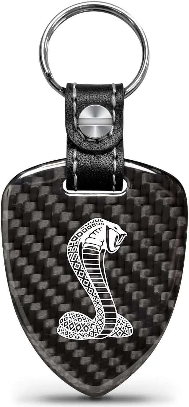 Ford Mustang Cobra Real Black Carbon Fiber Large Shield-Style Key Chain