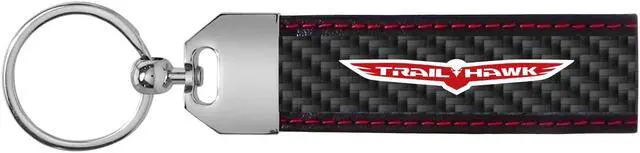 Jeep Trailhawk Real Black Carbon Fiber Loop Strap Key Chain with Red Stitching