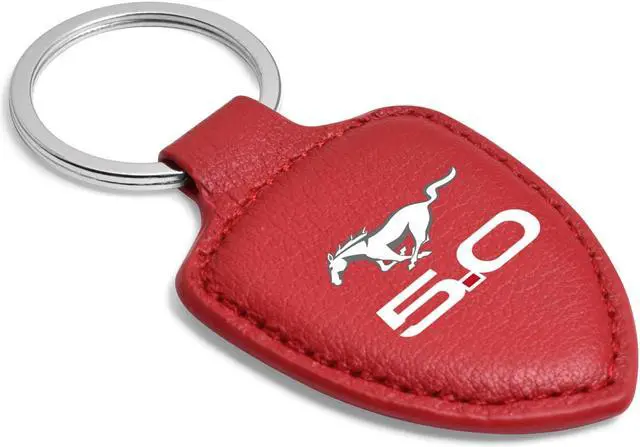 Ford Mustang 5.0 Red Real Leather Shield-Style Key Chain