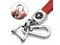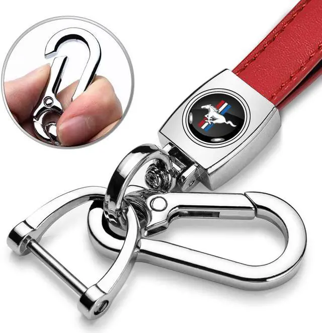 Ford Mustang Tri-Bar Logo in Black on Genuine Red Leather Loop-Strap Chrome Hook Key Chain