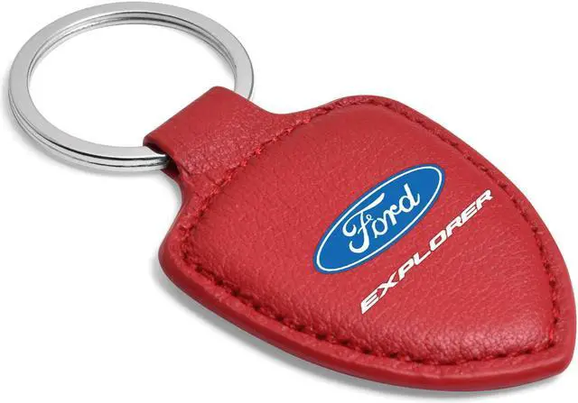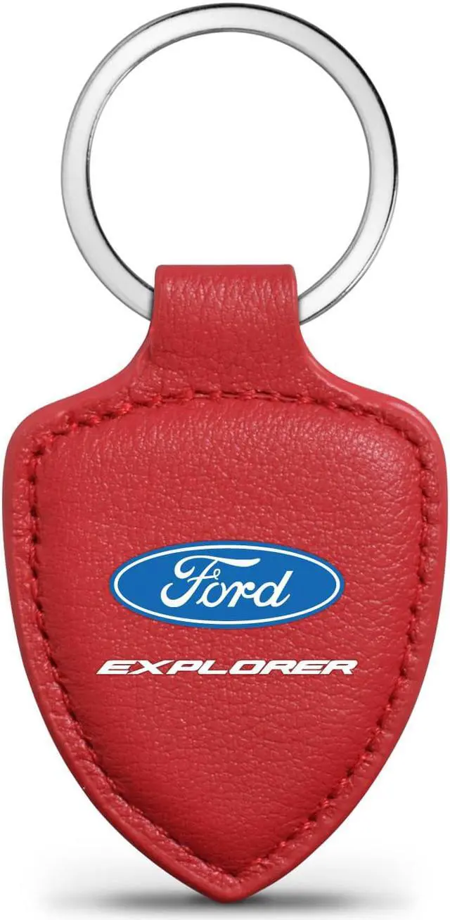 Ford Explorer Red Real Leather Shield-Style Key Chain