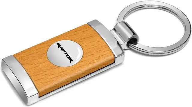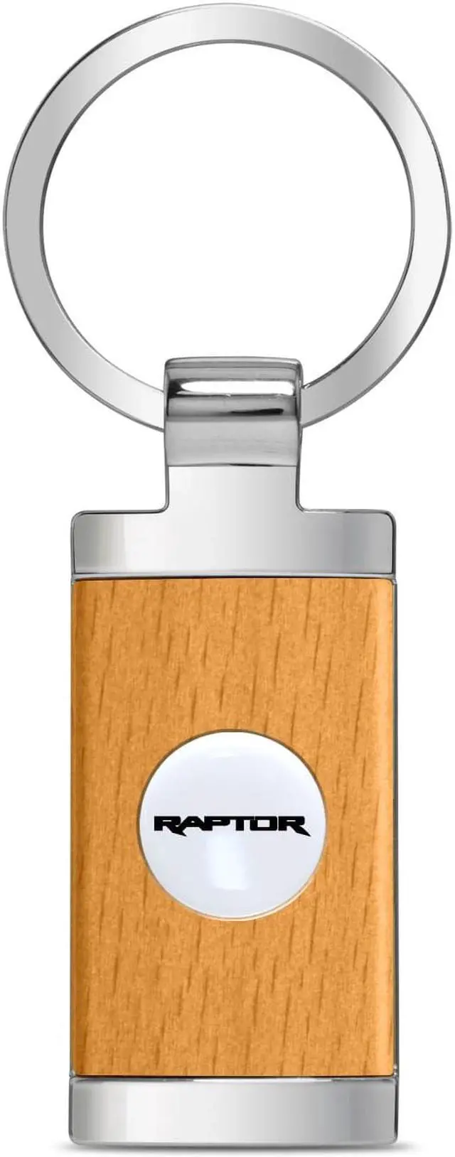 Ford F-150 Raptor Roundel Logo in White on Maple Wood Chrome Metal Trim Key Chain