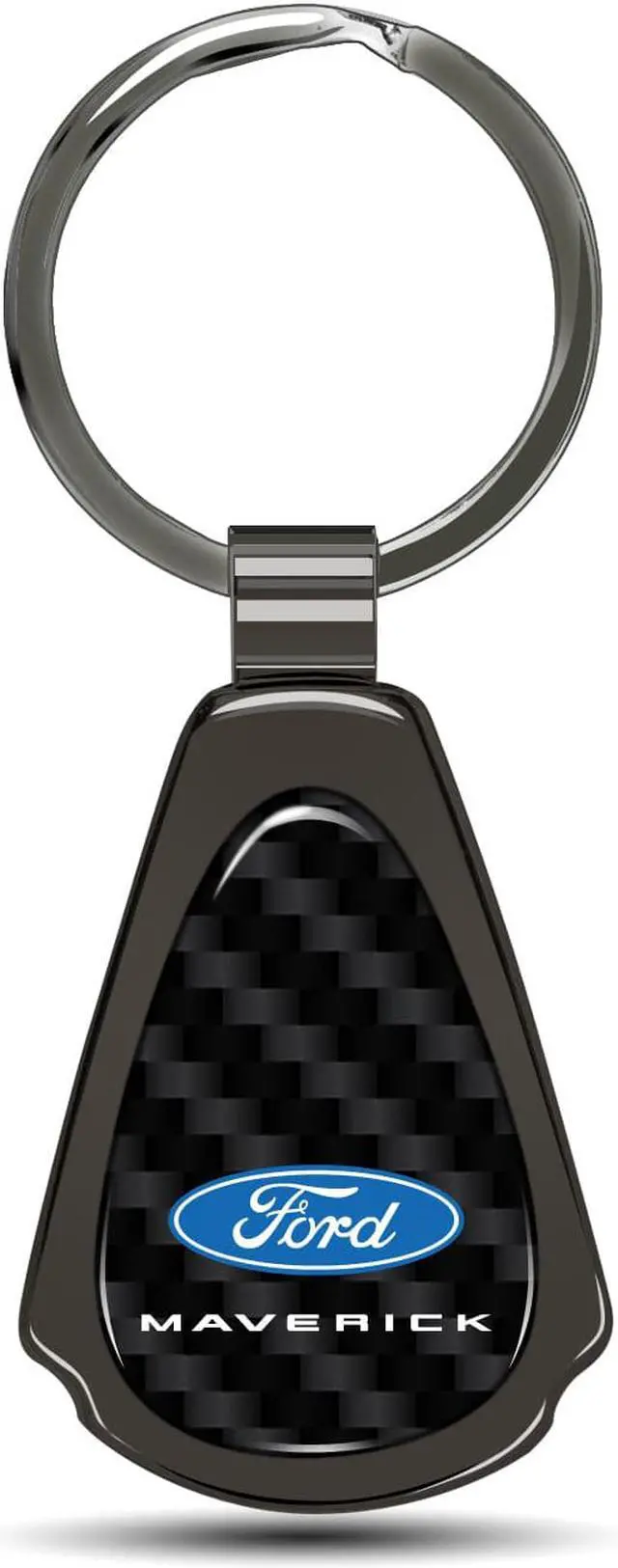 The tear-drop-shaped pendant has a real carbon fiber insert with gunmetal chrome finished metal surround.