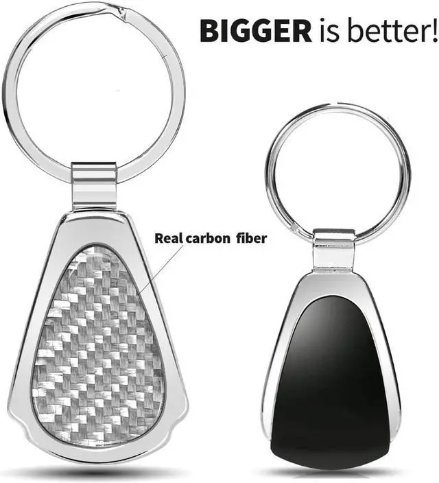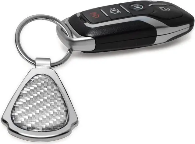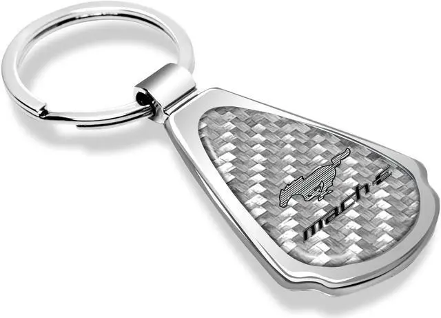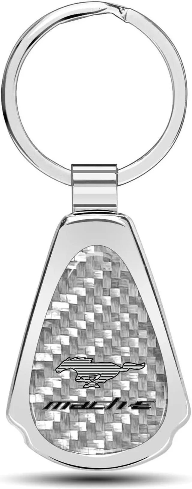 Ford Mustang Mach-E Real Silver Dome Carbon Fiber Chrome Metal Teardrop Key Chain