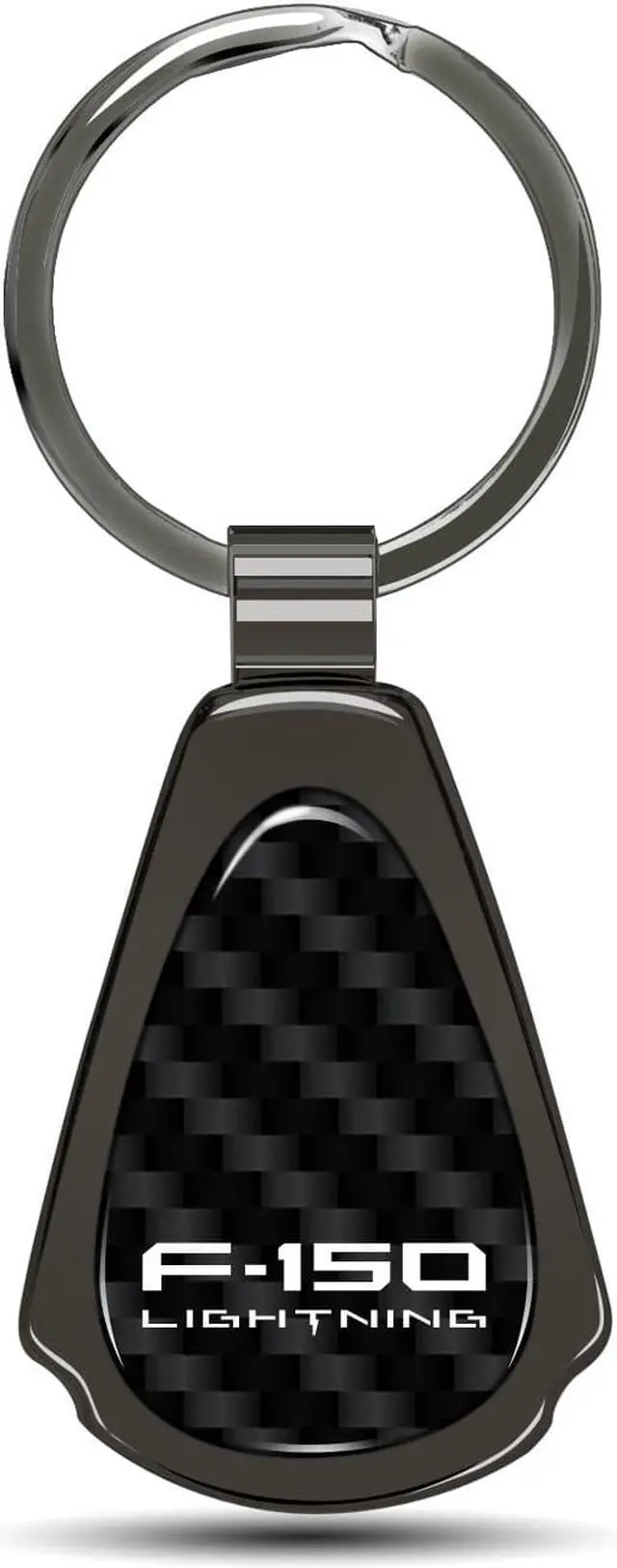 The tear-drop-shaped pendant has a real carbon fiber insert with gunmetal chrome finished metal surround.