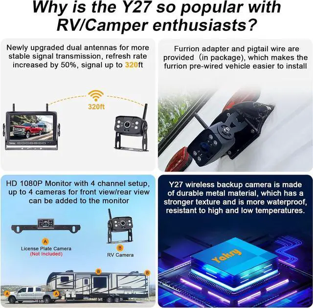 Versatile Usage Options: Backup camera for RV system can be used for reversing/rear view or full-time constant view, and suitable for RVs, 5th Wheels, trucks, travel trailers, campers, buses, and other vehicles.