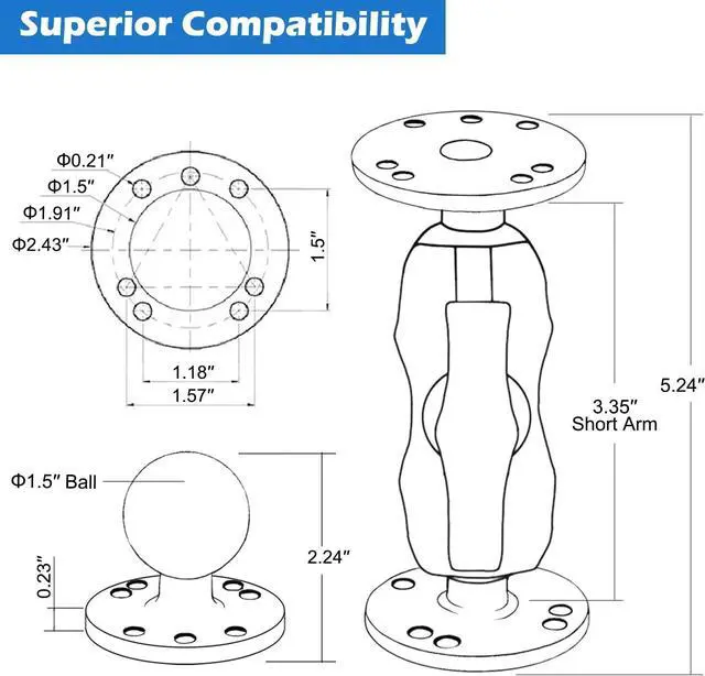 Industrial Grade Manufacturing Standard - Industrial-grade manufacturing standards ensure firm connections and protect your equipment. Drill-down mounting solution, choose either round plate featuring the AMPS hole pattern for attachment to compatible device holders.