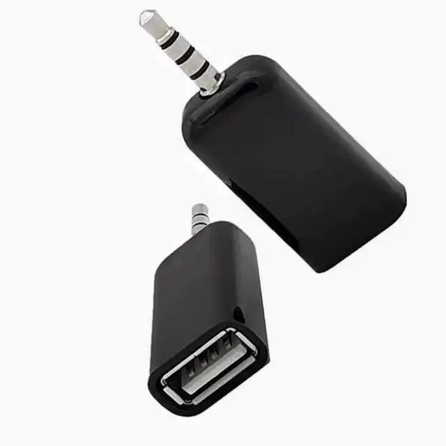 The 3.5 mm plug is connected to the car audio AUX audio interface, and the other end of the USB is connected to the U disk. Realize car play U disk songs;