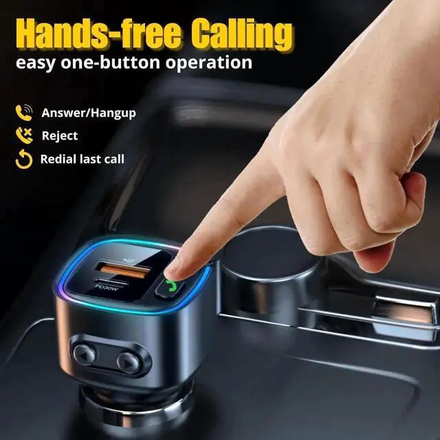 Bluetooth 5.4 Car Adapter Aux, Bluetooth Wireless Transmitter for Car with 3.5mm Auxiliary, Dual USB C and USB A Charging Ports, Hands-Free Calling, Support USB Flash Drive