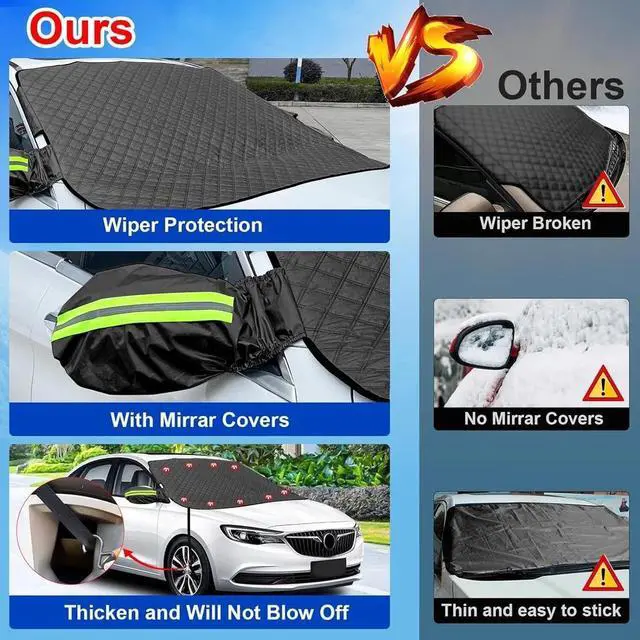 - Time-Saving: No more scraping ice or snow off your windshield in the freezing cold. Simply remove the cover, and your windshield will be clean and ready for use.